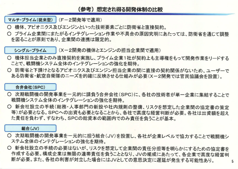 2020年の7月の発表で、開発体制について上記画像中の「シングル・プライム」の採用が決定した。当体制は改修の自由度/開発費の低減とそれに伴う国際協力等を勘案した結果の決定である。[6]