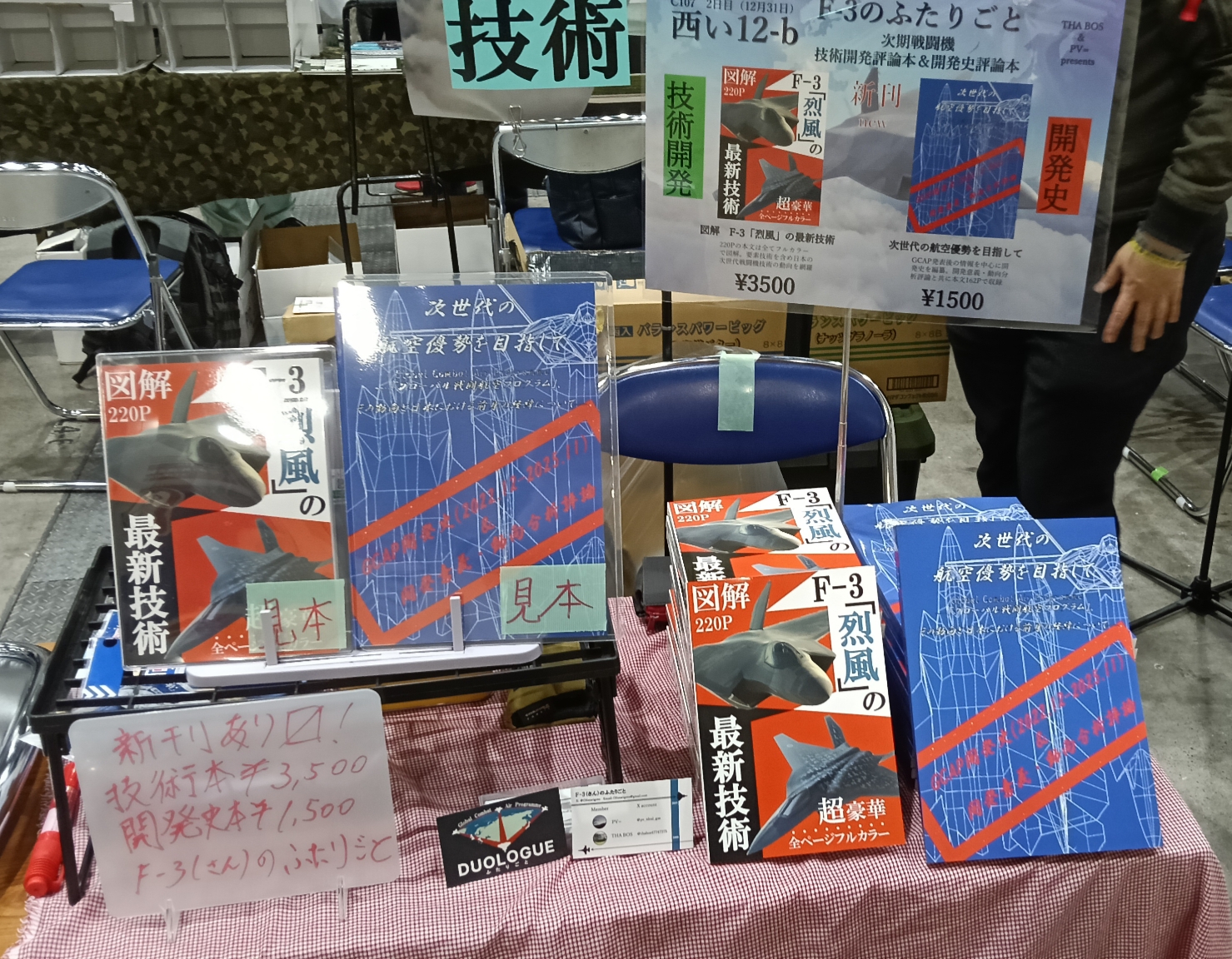 2026年01月18日 次期戦闘機に世界一詳しい(?)本が買えます コミックマーケット107(C107)で頒布した次期戦闘機本設営の様子鈍器(本)の厚み 次期戦闘機(F-3/GCAP)本を C107で頒布しました。 次期戦闘機について(多分) 世界一詳しい本です。 ※開始45分で合計250部が完売 現在、メロンブックスで 予約・購入できます。 ・技術解説: 図解 F-3「烈風」の最新技術 ・開発史本: 次世代の航空優勢を目指して よかったら買って下さい。 サンプルを↓に公開します。 図解 F-3「烈風」の最新技術 より次世代の航空優勢を目指して より 【追記(2026/1/18)】なぜか同人誌ランキング(一般)で1・2位を独占したり特設バナーが作られたり商業紙含む全体ランキングでトップ5に入りました(マケインとランキングで並ぶ????)ご好評ありがとうございます。人生って奇妙ですね。次世代の航空優勢を目指して図解 F-3「烈風」の最新技術 タグ :#ミリタリー#自衛隊#軍事#戦闘機#次期戦闘機#GCAP#飛行機#航空機
